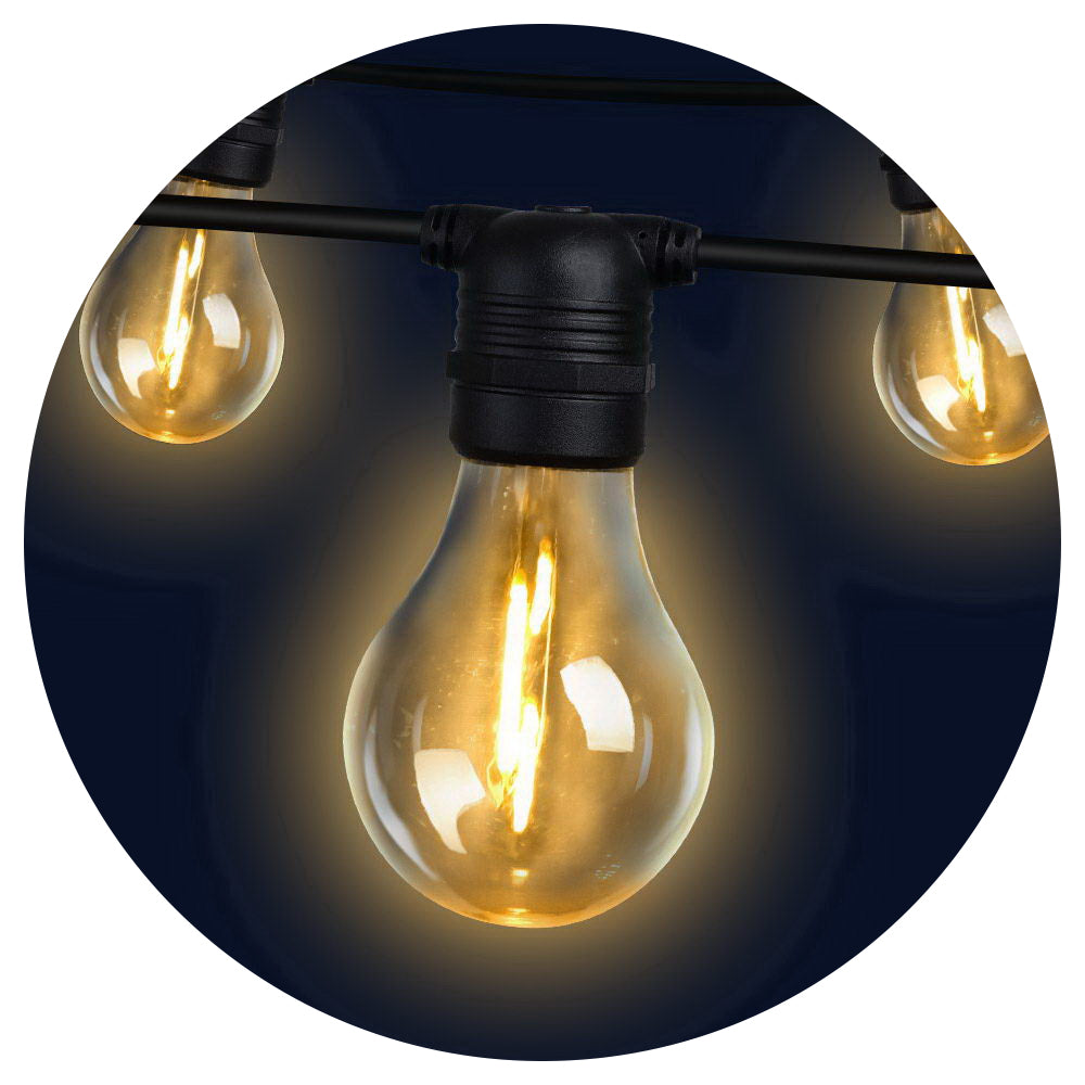 Our Festoon String Lights Are Great Not Only For Wedding And Birthday Parties Or Special Events But Also For Creating A Warm Inviting Ambience With Its Bright And Mellow Glow. Suitable For Both Indoor And Outdoor Use Its Ip44 Rating Means That It Can Be Used In The Rain And All Weather Conditions. Each Bulb Draws A Very Low Voltage And Is Placed 90Cm Equally Apart From Each Other Throughout Its 23M Length For An Even Distribution Of Illumination And Brightness. Not Least The Each Bulb Has A 20000 Hours Lifespan So That You Can Get To Use The String Lights For Quite A While.