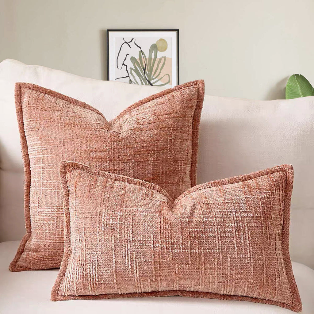 Beige Chenille Crosshatch Textured Pillow Covers Set Of 2 Modern Minimalist Sofa Bed Cushion 45X45cm & 30X50cm(Without Core) Cushion Covers