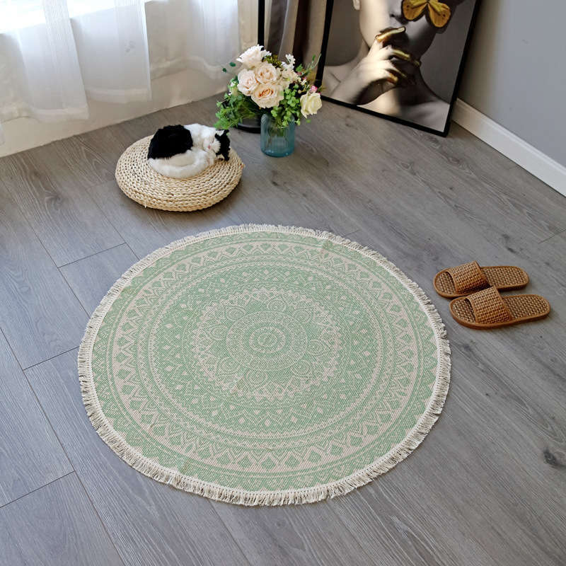 92 X 92Cm Retro Bohemian Carpet Hand Woven Cotton Linen Rug Bedside Geometric Floor Mat Living Room Bedroom Decor Ver 3 Rugs