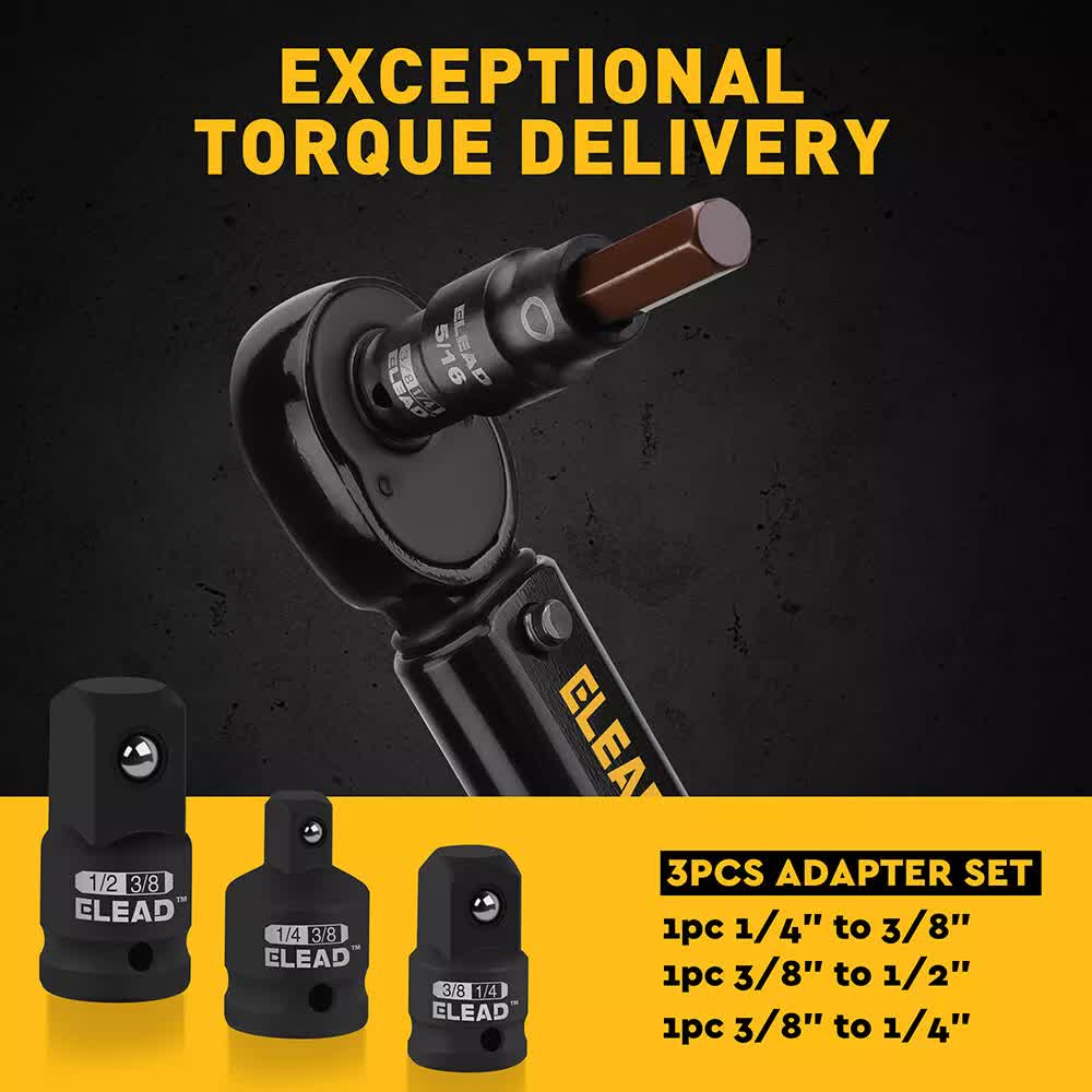 Multi-Size Coverage This 16-Piece Set Covers All Your Needs Including 1/4" Drive (5/64 3/32 1/8 5/32 3/16 7/32 1/4) 3/8" Drive (9/32 5/16 3/8 7/16 1/2) And 1/2" Drive (9/16) Plus 3 Socket Adapters. Each Socket Features A Detent Pin Hole For Added Stability And Precision.