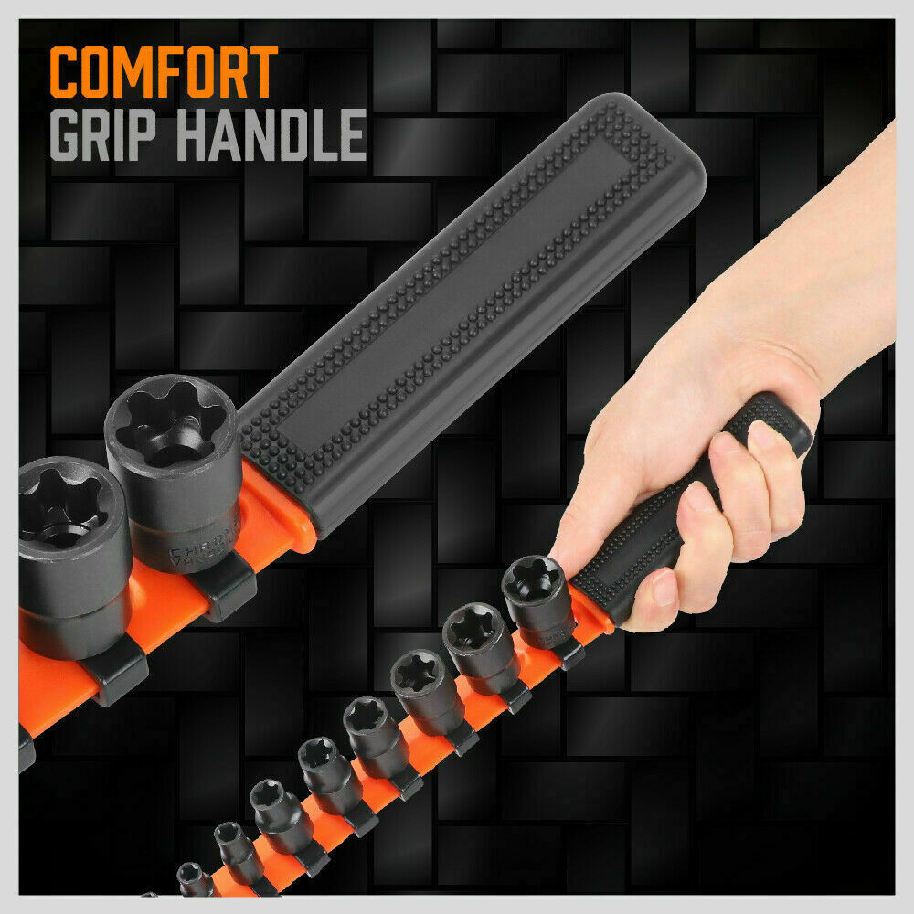 11Pc E Torx Socket Set Female External Star Type E4 E20 3/8" 1/4" Dr. With Rail Socket Wrenches