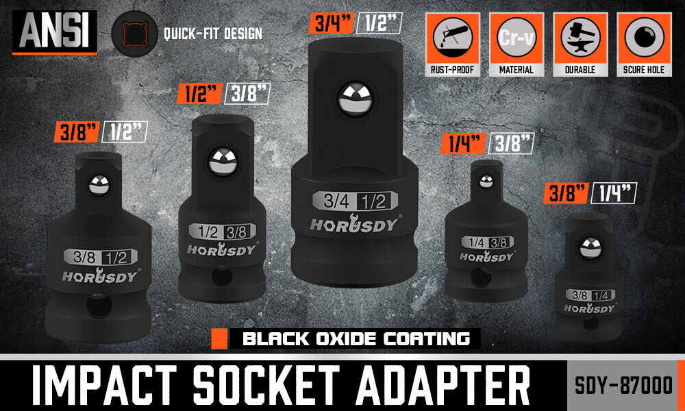 Horusdy 5Pcs Impact Socket Adapter Set Reducer 1/4 3/8 1/2 Inch Drive Other Wrenches & Spanners