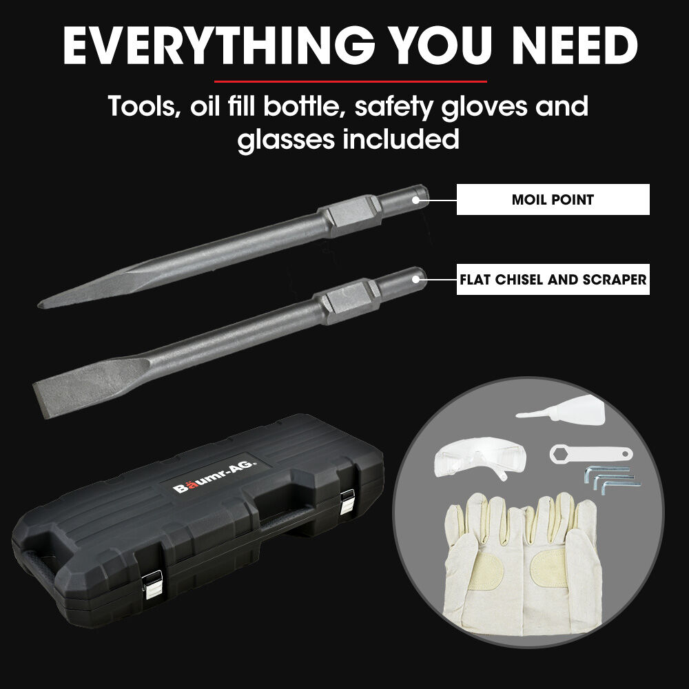 The Baumr-Ag Bmjk-24S Mk Ii Jackhammer Is A Full Commercial-Grade Demolition Tool Engineered For Maximum Impact And Durability. Powered By A 2400W Precision-Wound Copper Induction Motor And Equipped With A Hardened Steel Crank Reduction Gear Set And Forged Steel Body This Jackhammer Delivers Uncompromising Performance With Reduced Vibration And Superior Energy Transfer.
