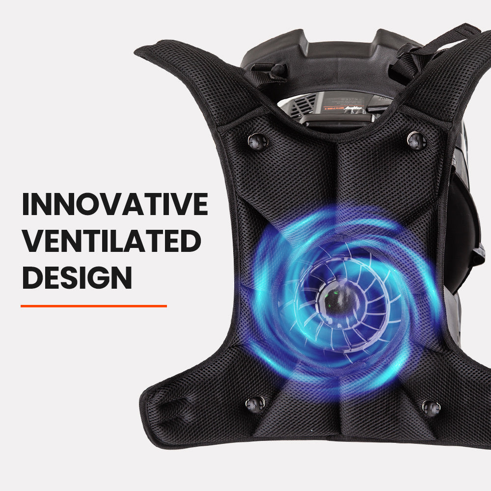 For fatigue-free work all day the BPX735 II features an ergonomic design comprised of thickly padded shoulder straps anti-vibration rubber mounts and ventilated back support. The ultra flexible air outlet gives you optimal reach while the cruise control switch is there for added convenience. The large 0.8L fuel tank lets you do the task at hand longer without having to re-fuel.