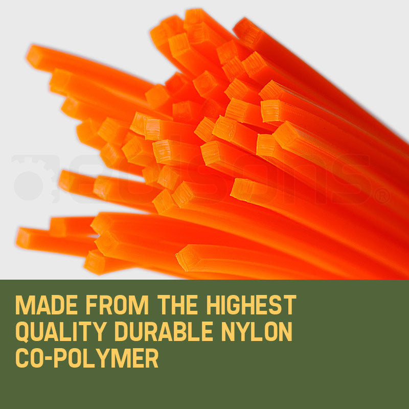 Bright Orange for easy visual accuracy commercial 3.1mm diameter and pre-cut to suit just about any commercial head - finally you've been heard!