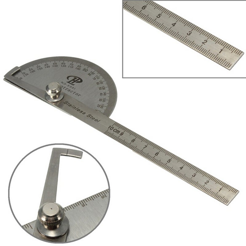 2Pcs Stainless Steel Protractor Angle Finder Arm Measuring Round Head Ruler Protractors