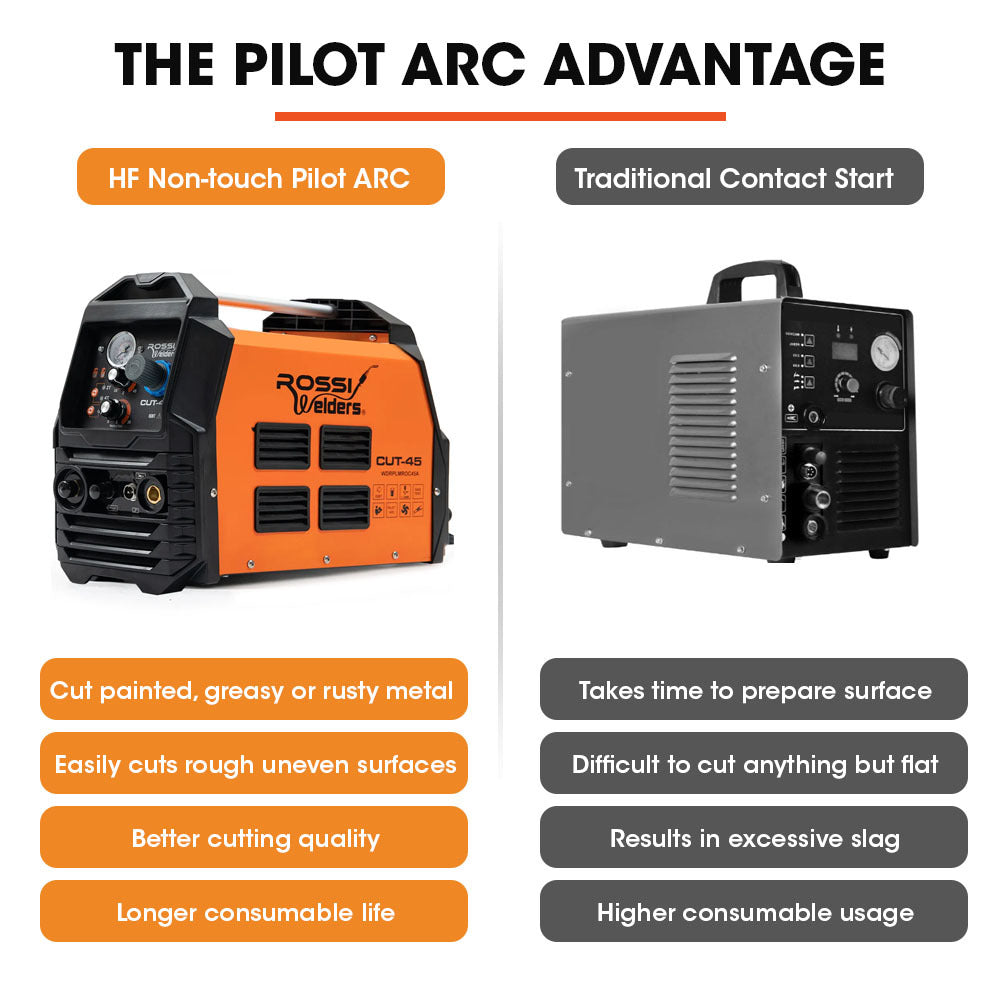 The Rossi Next Gen Cut-45 Pilot Arc Plasma Cutter Is The Latest Innovation In High-Power Plasma Torches. This Powerful Lightweight Inverter Has True Dc Inverter Technology To Produce 98 Volts Up To 45 Amps.
