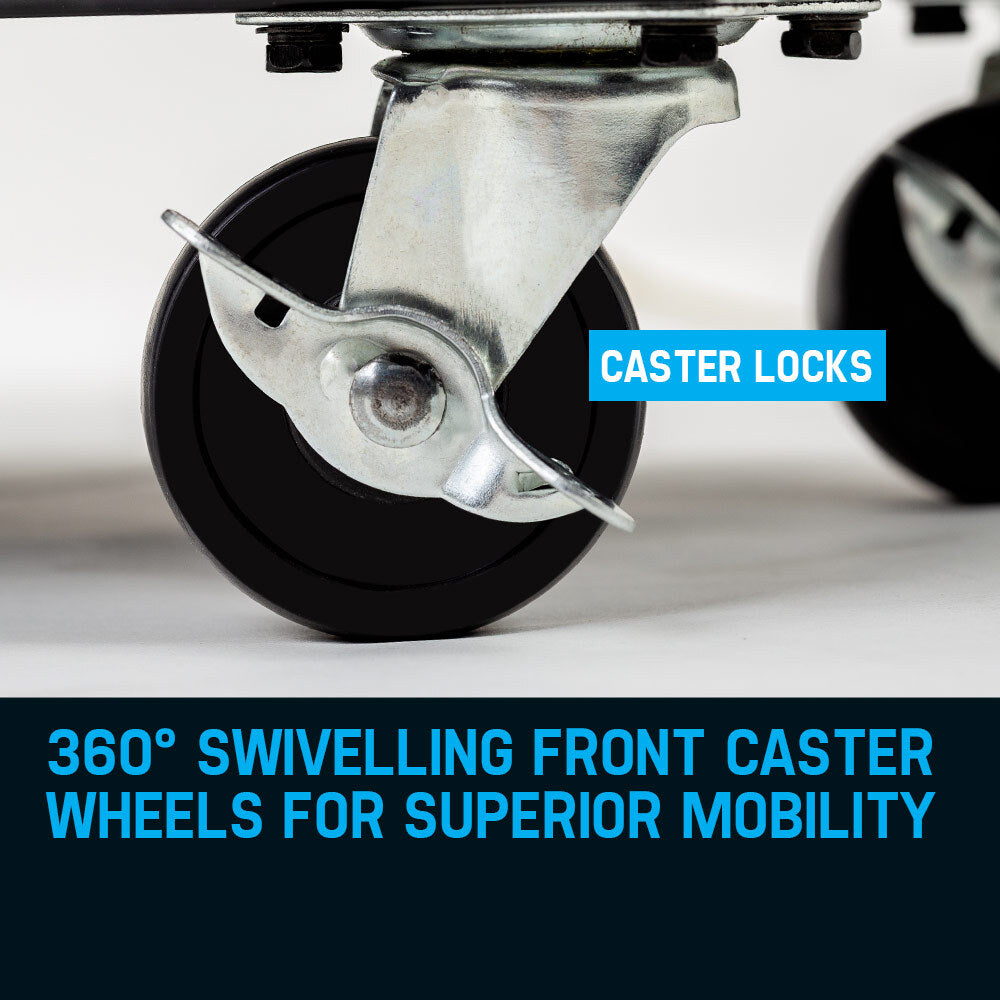 Of course fun as it is welding does ask for a strict Safety protocol - and you can rest assured that the Rossi Deluxe ticks the boxes. Designed in powder-coated commercial steel it features solid build quality throughout with details such as a single wheel axle spring washers and double tank chains being a given. This translates into a carrying capacity of some 50kg; you can load her up to your heart's content.