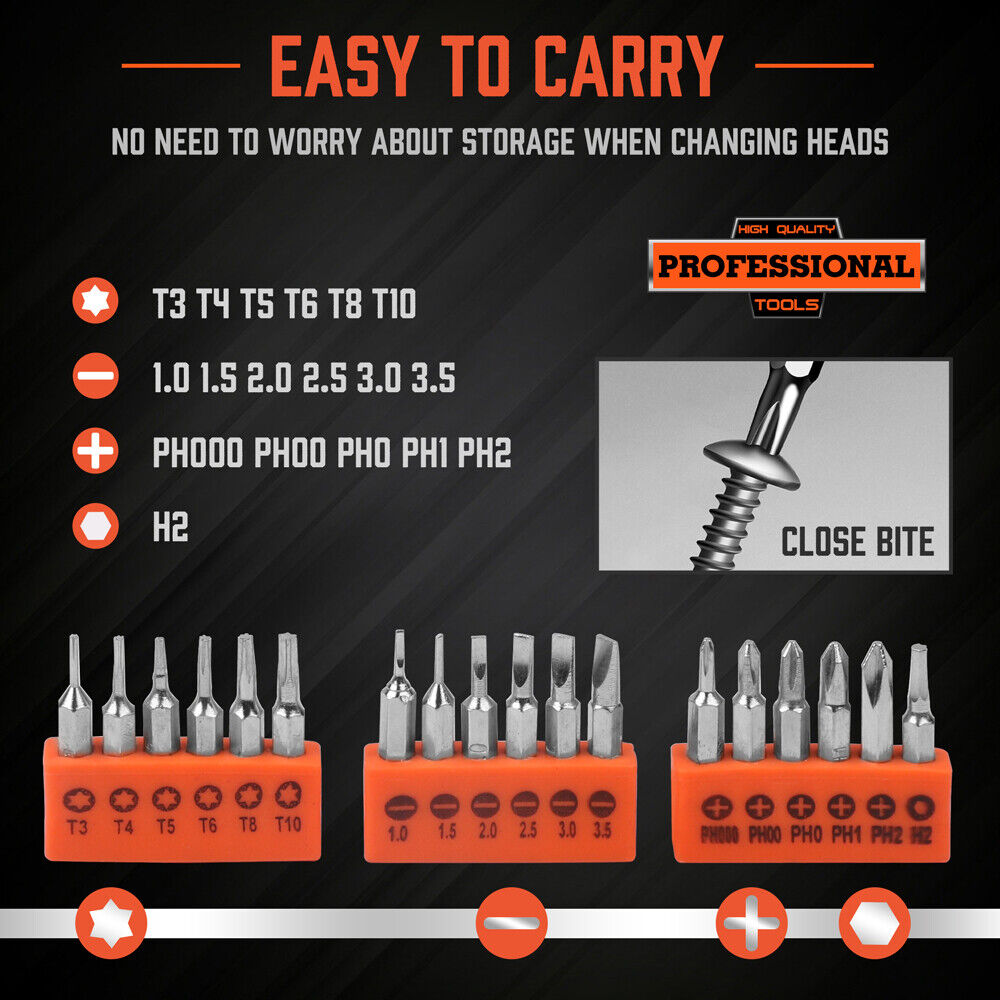 - 6X Torx Bits: T3-T4-T5-T6-T8-T10