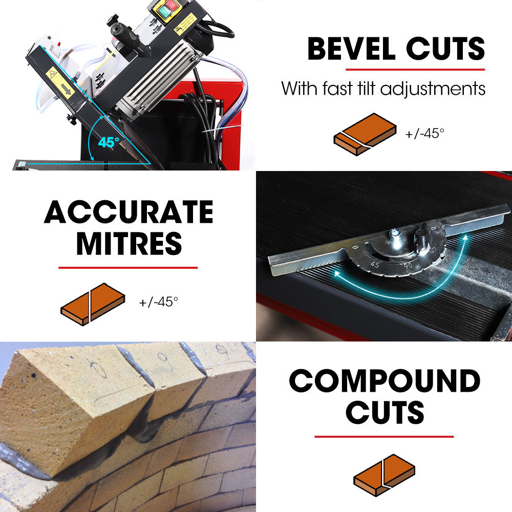 Equipped With A 450Mm High-Performance laser-Embedded Diamond Blade The Bbs450 Ensures Optimal Cutting Results Enabling It To Work With The Toughest Materials Like Marble Granite And ""Nori"" Red Brick.