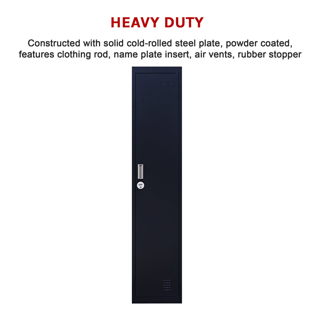 The Locker Is Constructed With Solid Cold-Rolled Steel Plate For Sturdiness And Durability. The Steel Is Also Powder-Coated To Resist Corrosion. The Locker Measures 180 X 38 X 45Cm And The Maximum Recommended Weight Capacity Is Approximately 30Kg. In Addition There Are Spaces Designated For Labels To Help Identify Lockers When Needed.