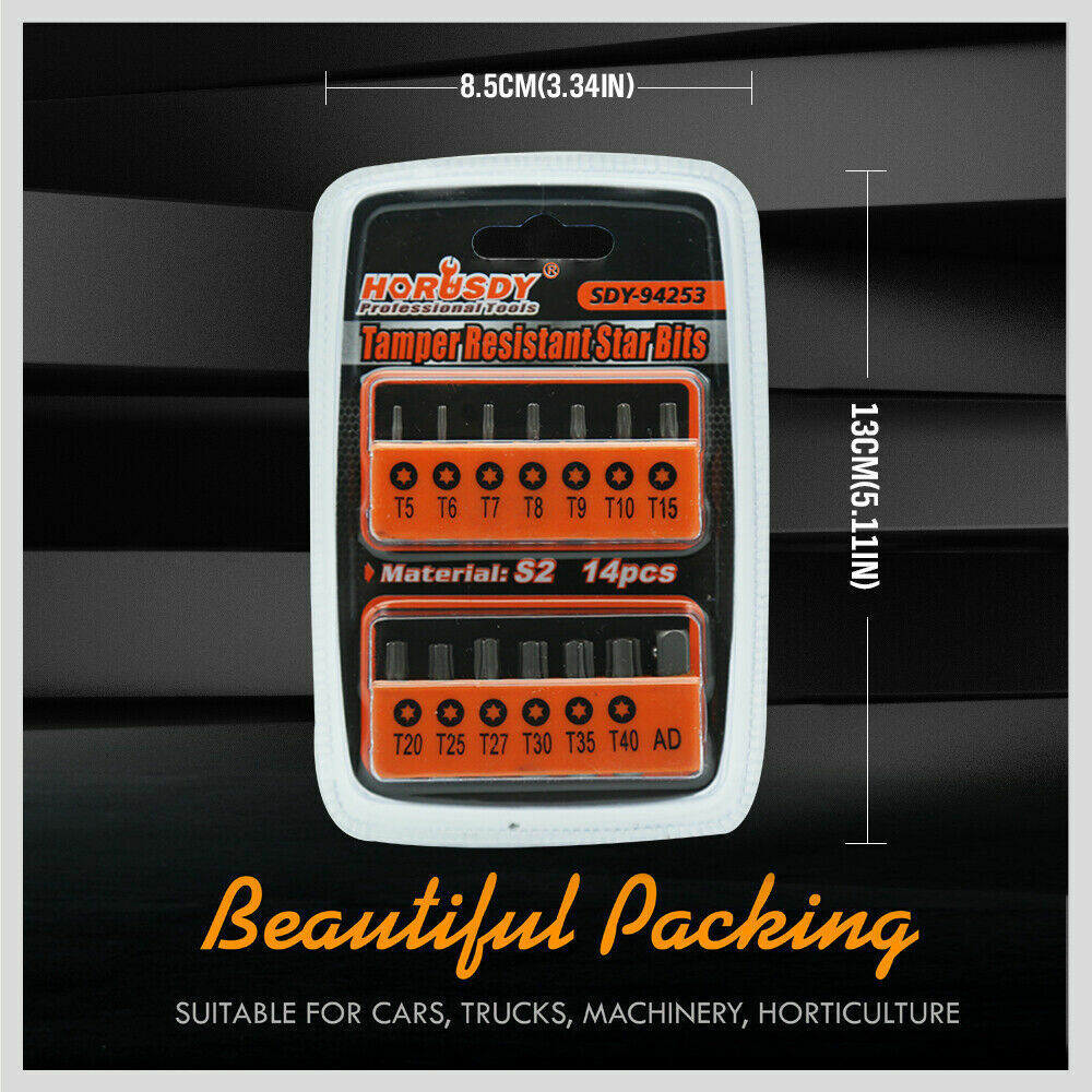 14Pc Torx Key Bit Set Tamper Proof Star Wrench Bits T5 T40 Socket Adapter S2 New Screwdrivers & Nutdrivers