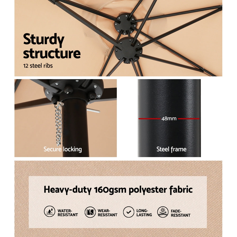 Instahut 4.57M Outdoor Umbrella W/Base Stand Beach Pole Garden Tilt Beige Patio Umbrellas
