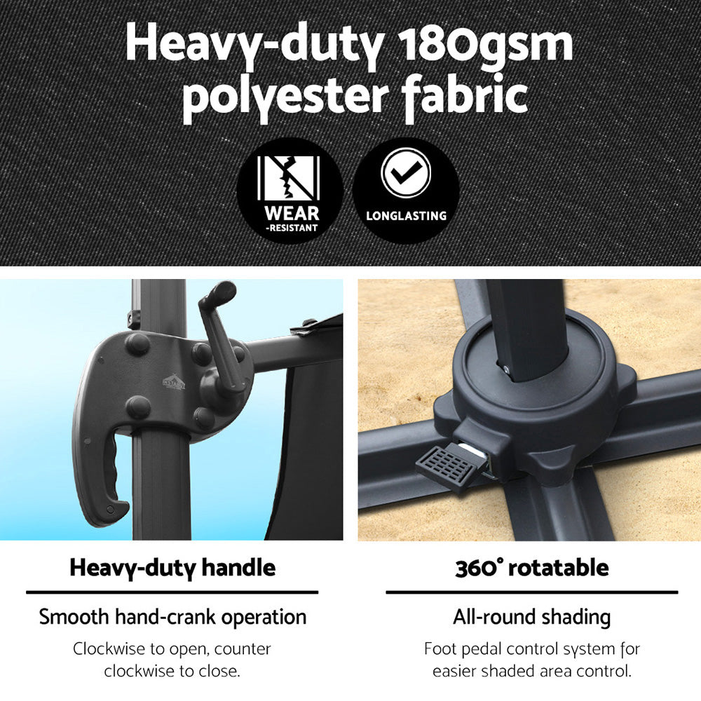 Instahut Roma Outdoor Umbrella Black Patio Umbrellas