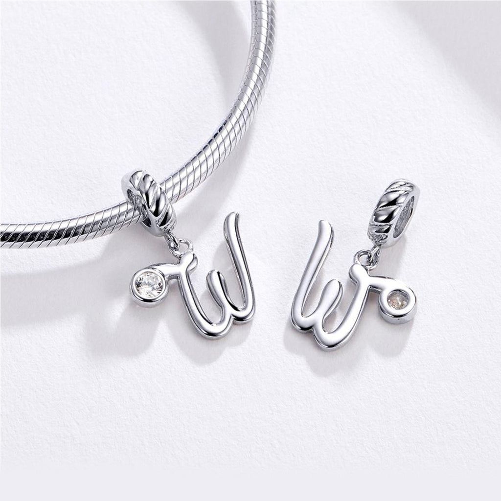 • 1 X 925 Sterling Silver Personalized Letter Pendant For Diy Bracelets Or Necklaces (Style - W)