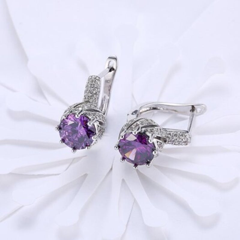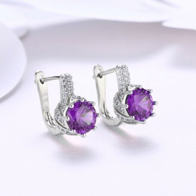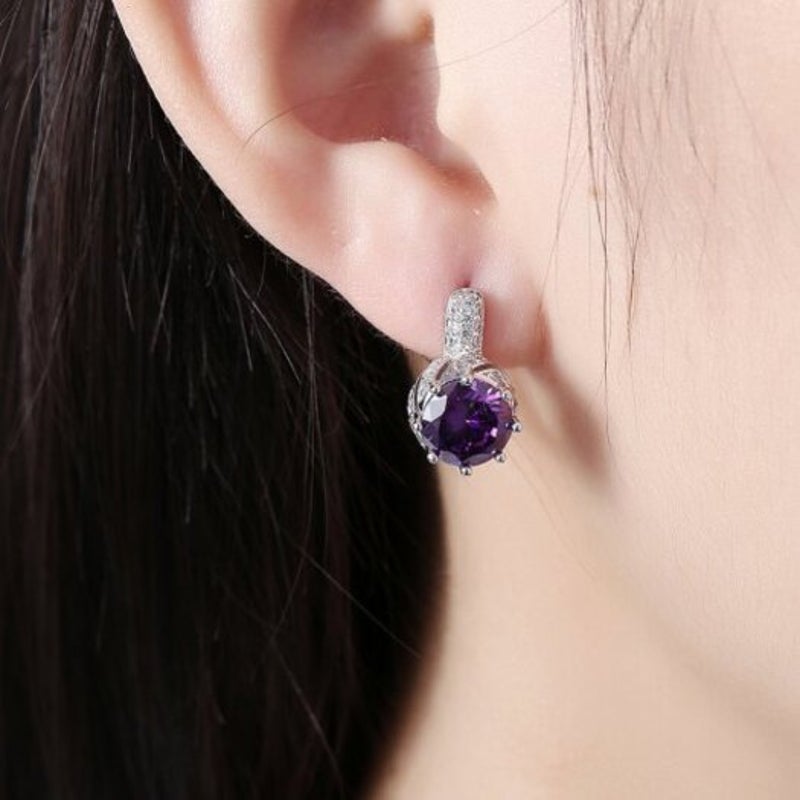 Veile Studios Zircon Earring Purple Round Diamond Romantic Wind Earringclip Silver Earrings