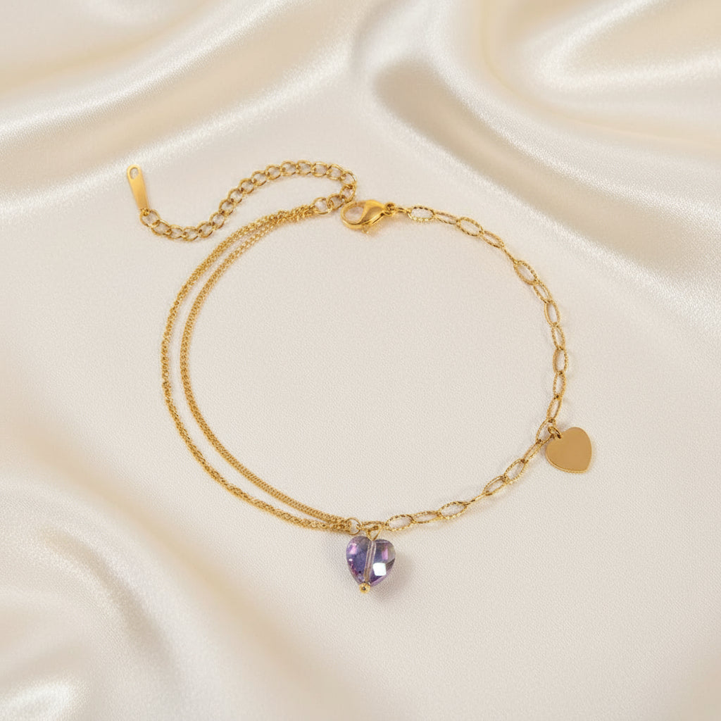 Stainless Steel Synthetic Crystal Heart Anklet Bracelet