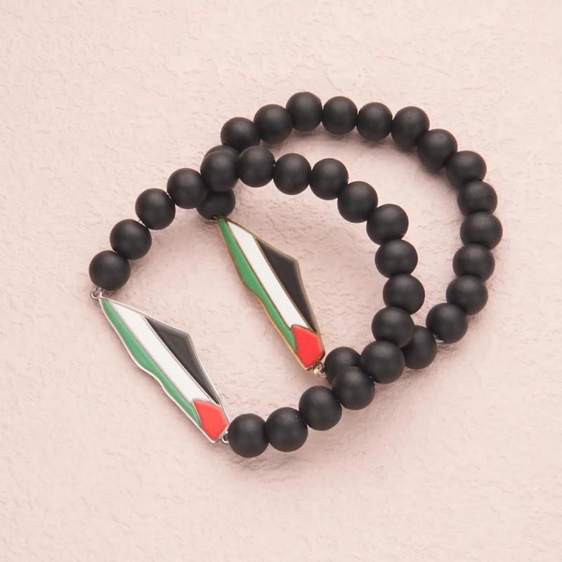 • Stylish Black Bracelet Featuring The Palestinian Flag Map Design