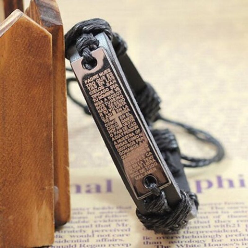 Veile Studios Punk Cross Scripture Bracelet Black Bracelets