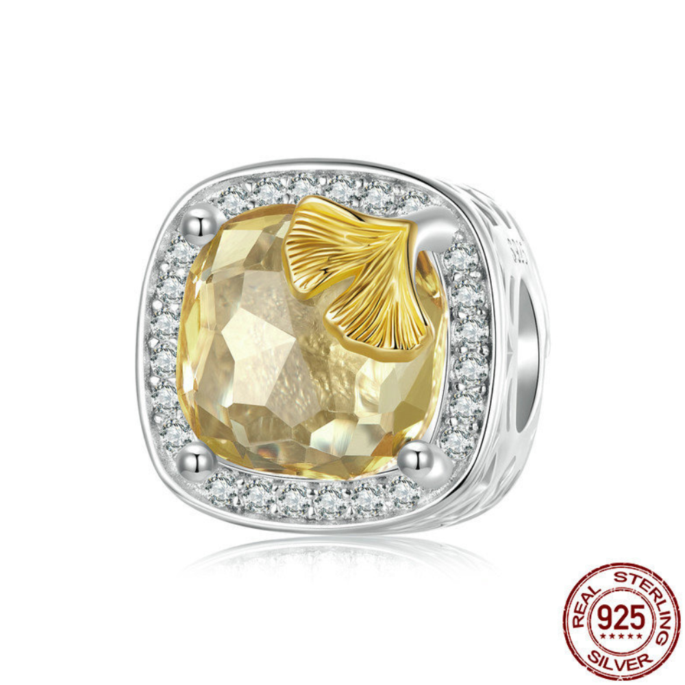 • 1 X Silver Charm Autumn Ginkgo Leaf Diy Bracelet Beads S925 Pure Silver Loose Beads