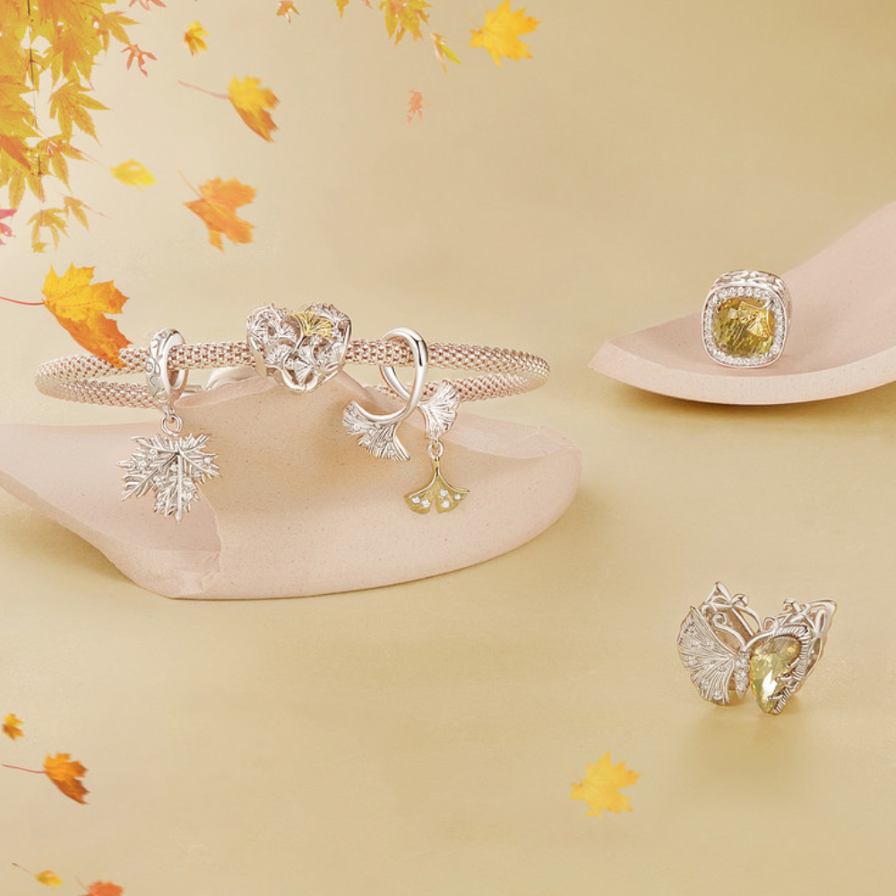 - 1 X Yinziyun Original Ginkgo Butterfly Diy Bracelet Beads Forest Romantic Golden Butterfly S925 Pure Silver Beads