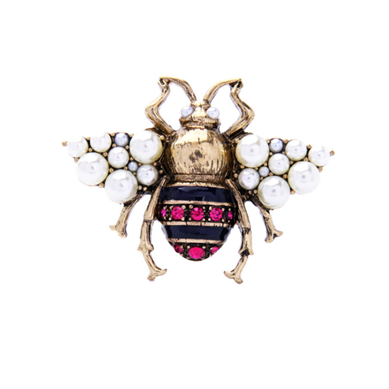 Veile Studios Inlay Rhinestone Simulated Pearl Bee Brooch Brooches