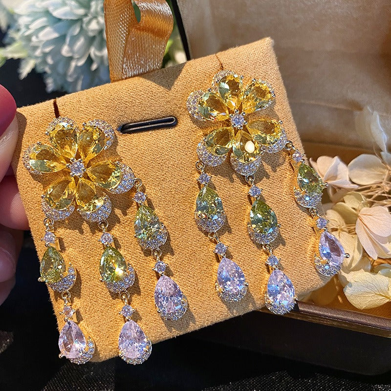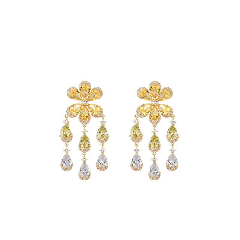 - 1 X S925 Silver Needle Flower Tassel Earrings Gradient Colored Zircon Earrings
