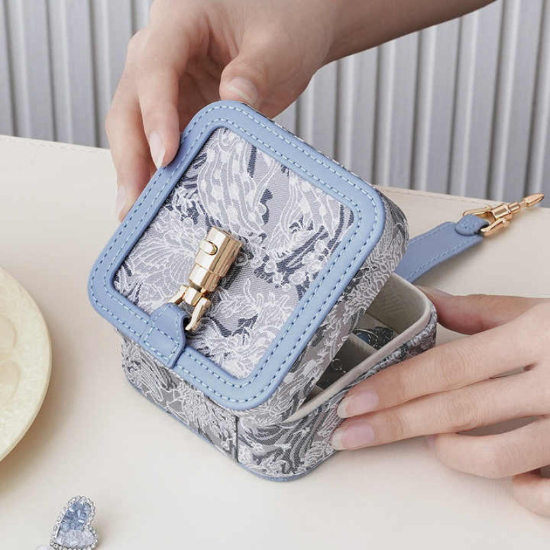 Veile Studios Blue Portable Embossed Jewelry Box Flip Top Necklace Ring And Earring Organizer With Elegant Design(The Is Prop For Photo Shoot Not Incl