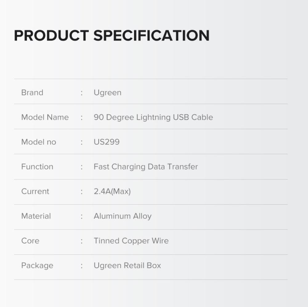 Ugreen 60521 Usb A To 8 Pin 90 Degree Angel Cable 1M Cables & Adapters
