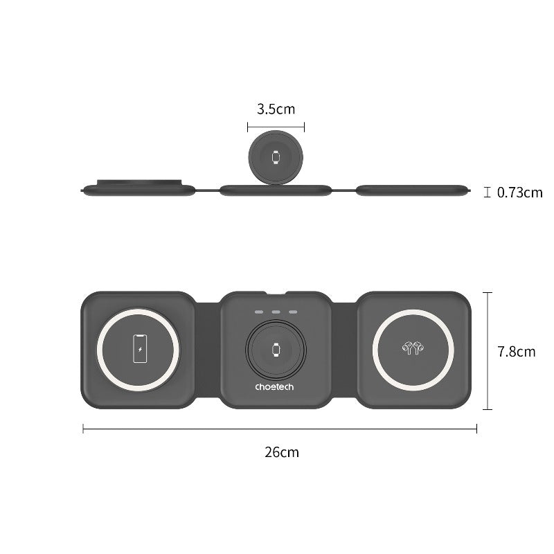 Choetech T588 F Bk 3 In 1 Foldable Fast Wireless Charger For Phone/Watch/Earphone Chargers & Cradles