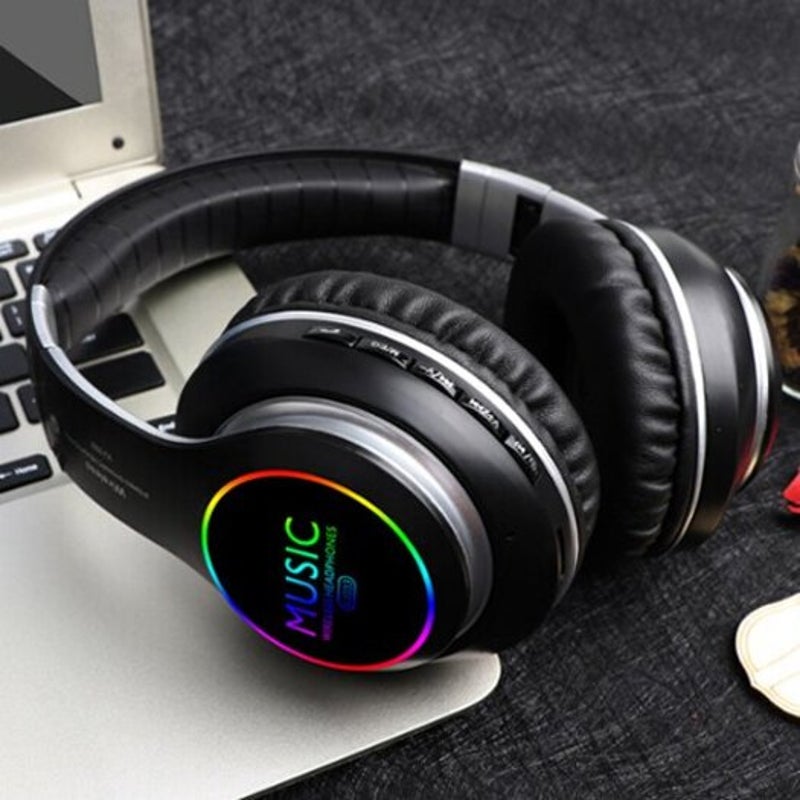 Vj033 Folding Led Hifi Wireless Headset Bluetooth 5.0 Sport Headphone With Noise Reduction Mic Tf Card Play Black Headsets