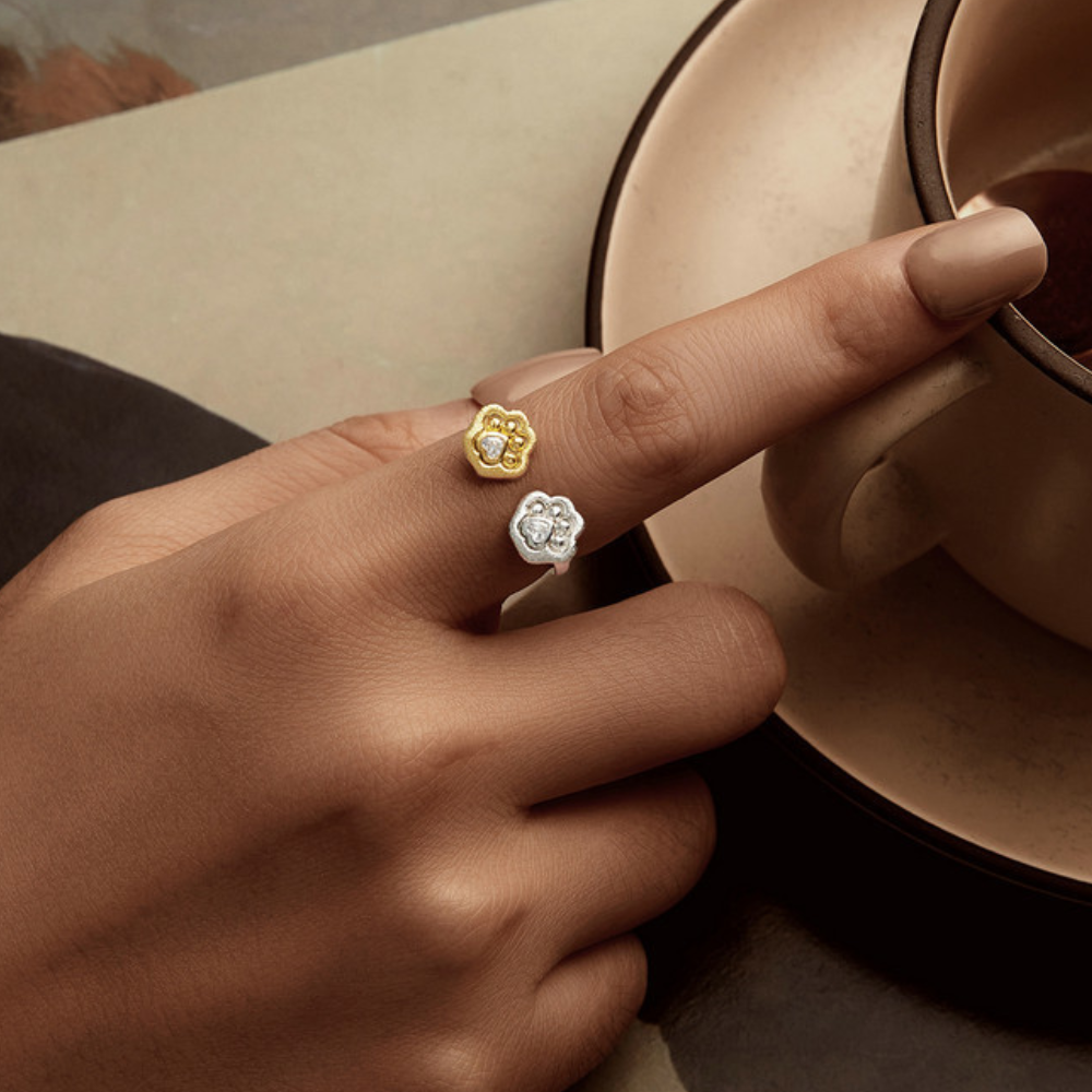 Veile Studios Silver Charm Original 18K Gold Plated Claw Print Open Ring Asymmetric Design Rings