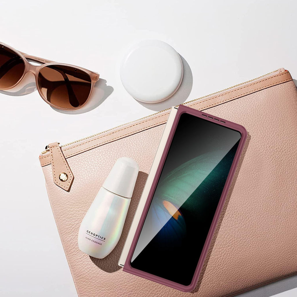 For Samsung Galaxy Z Fold4 5G Foldable Pc Case Solid Colour Wine Red Cases Covers & Skins