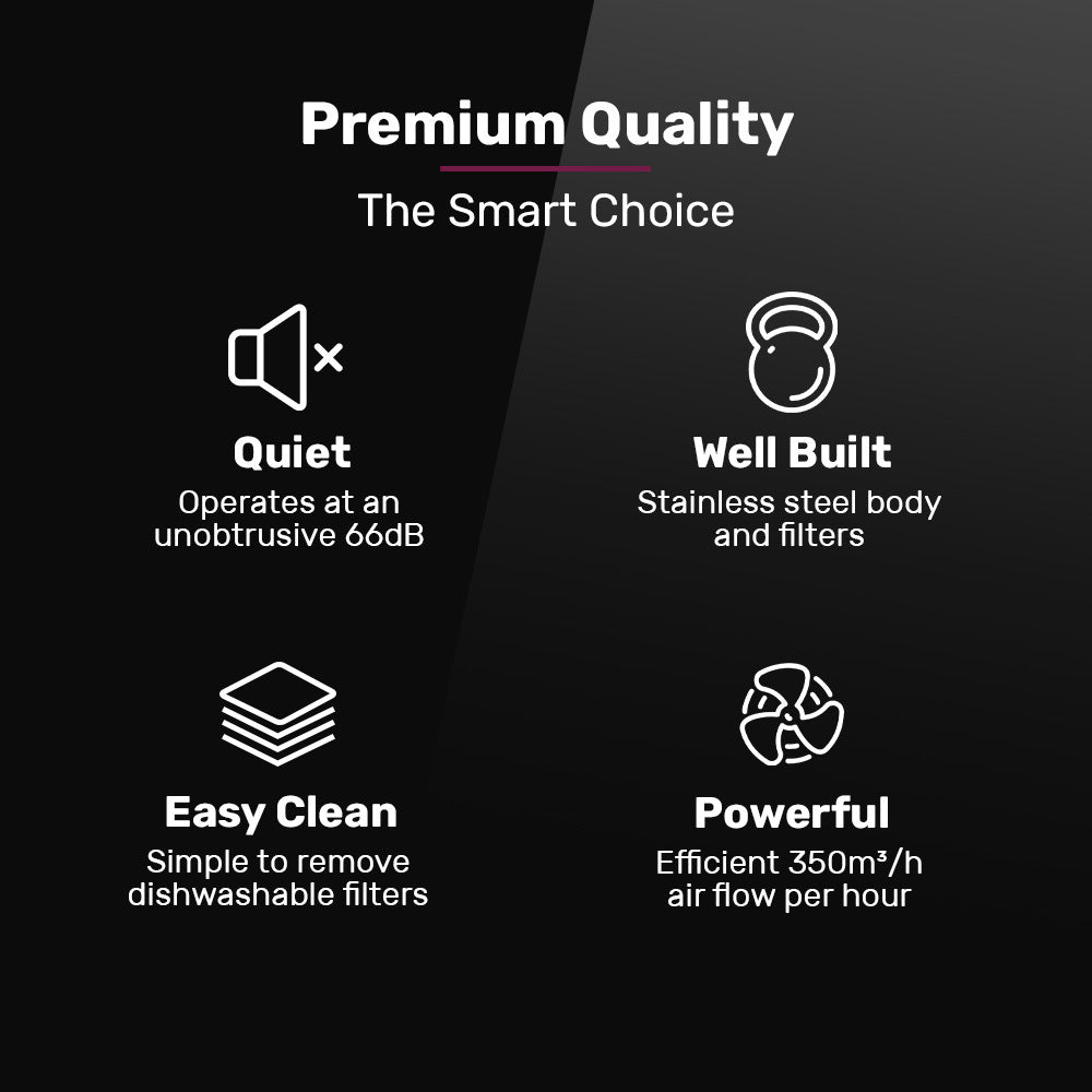 Despite Its Power It Operates Quietly At Just 66Dba Even At Full Speed. The Three-Speed Push Button Control Lets You Easily Adjust Ventilation And The Removable Dishwashable Four-Layer Aluminium Filters Make Cleaning A Breeze.