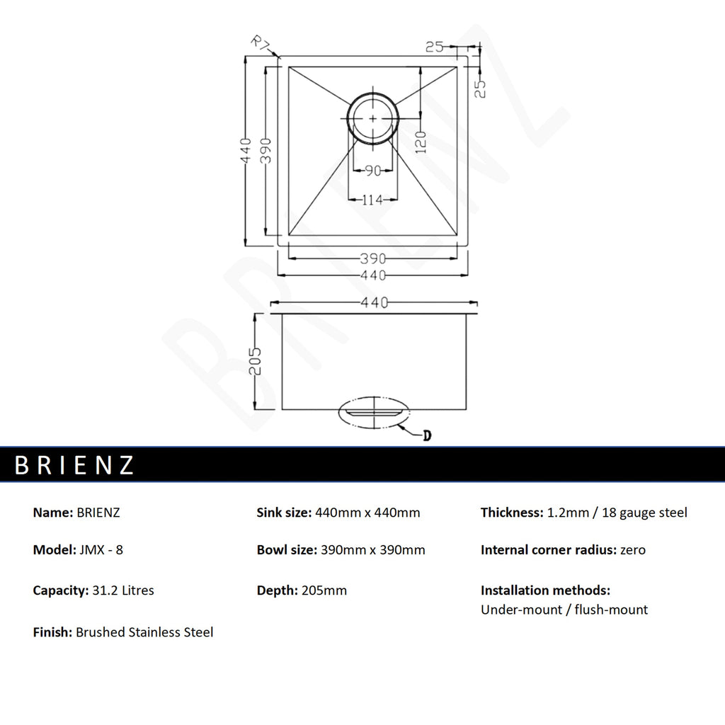 - Single Sink Measuring 440 X 440 X 205Mm (L X W X D)