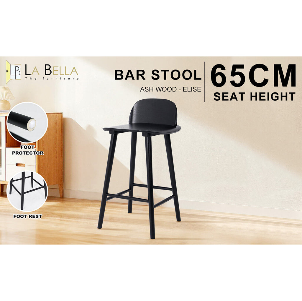 La Bella Bar Stool 65Cm Elise Ash Wood Counter Kitchen Barstools Dining Chair - Black