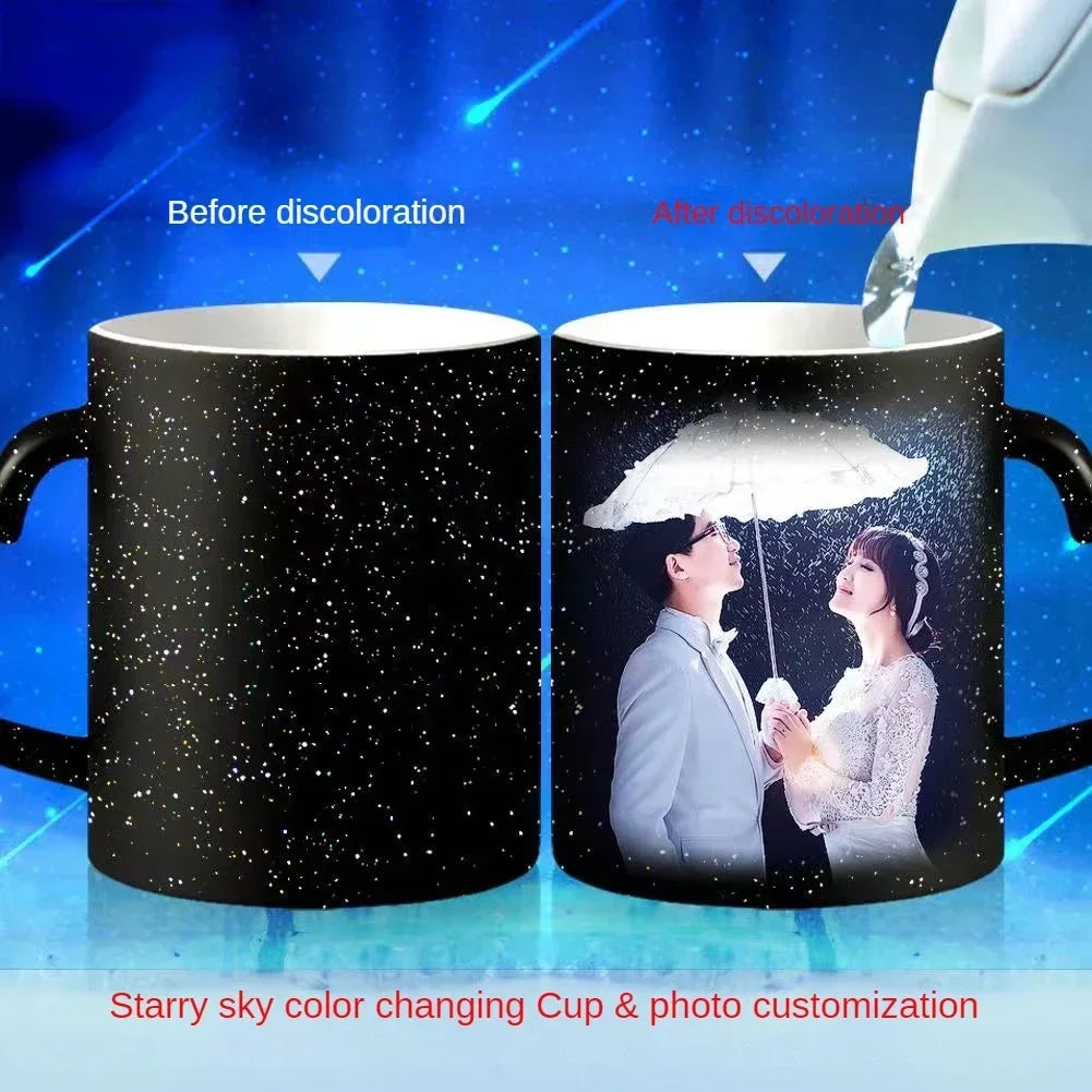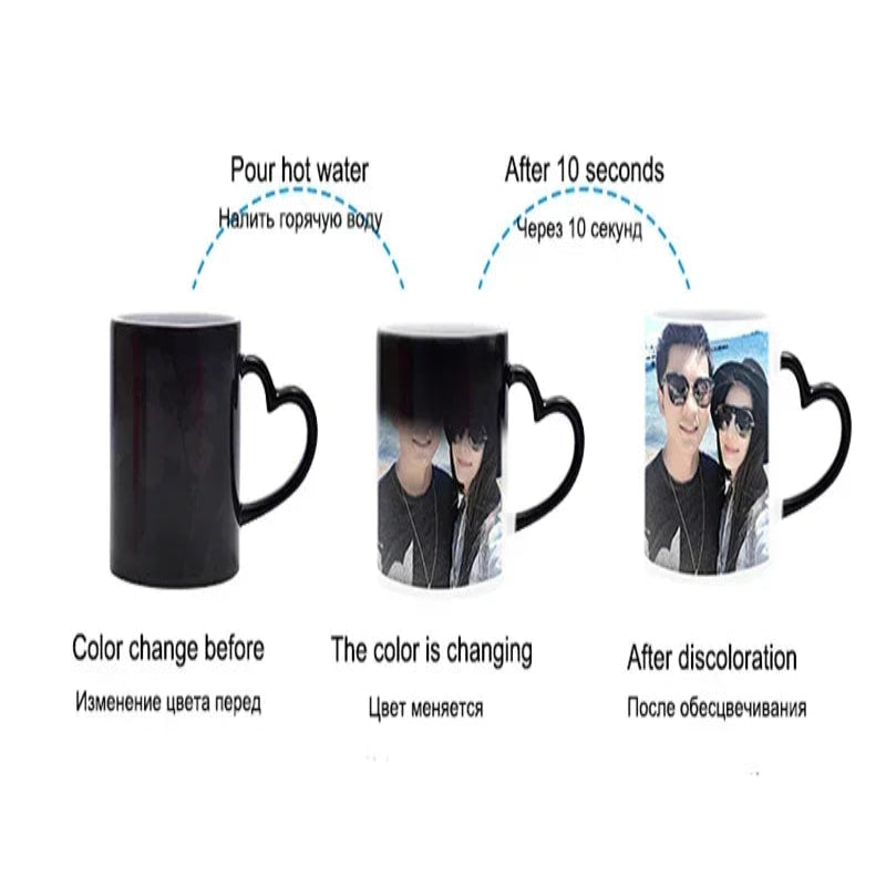 This Ceramic Coffee Mug Features A Colour-Changing Design That Reveals A Custom Photo When Filled With A Hot Beverage. The Mug Is Suitable For Personalised Gifts And Is Designed For Use With Coffee Tea Or Other Hot Drinks. It Is Made From Durable Ceramic Material And Has A Standard Capacity Suitable For Everyday Use. The Mug's Surface Allows For High-Quality Photo Printing Making It A Unique Item For Kitchenware Collections And Gift Purposes.