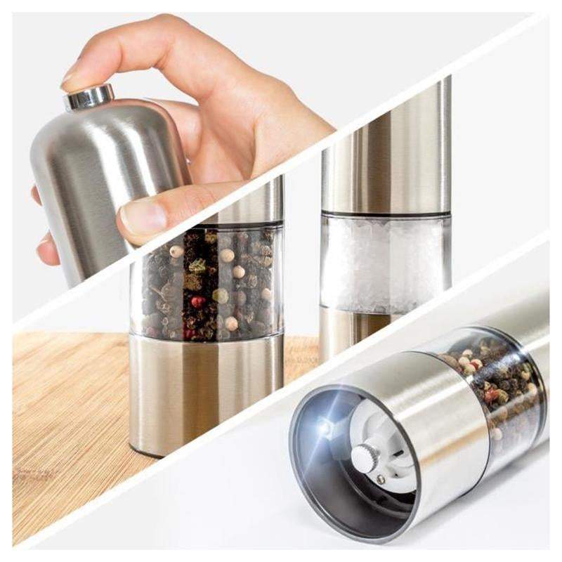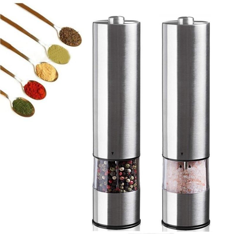 Salt & Pepper Set Of Two Stainless Steel Electric Pepper And Salt Spice Grinder