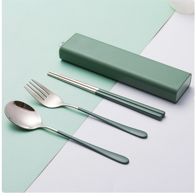 Dinnerware Set Stainless Steel Chopsticks Spoon Fork With Box Travel Lunch Student Utensil Cutlery Sets