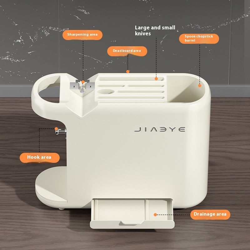 This Multifunctional Kitchen Knife Rack Is The Perfect Solution For Keeping Your Kitchen Organised And Your Knives In Top Condition. Featuring A Built-In Knife Sharpener This Organiser Also Stores Knives Chopsticks Cutting Boards And Pot Lids In One Compact Unit. Made From Durable Polypropylene Material With A Sleek Design It Is Both Practical And Space-Saving. Ideal For Home Chefs It Helps Maintain A Tidy Kitchen While Ensuring Your Tools Are Easily Accessible When Needed.