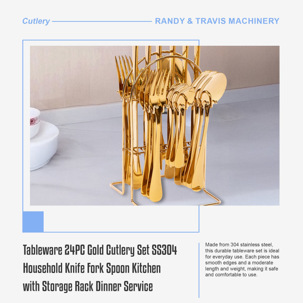 Tableware 24Pc Gold Cutlery Set Ss304 Household Knife Fork Spoon Kitchen With Storage Rack Dinner Service