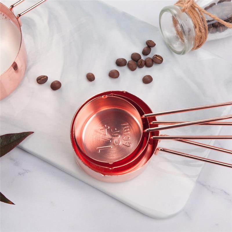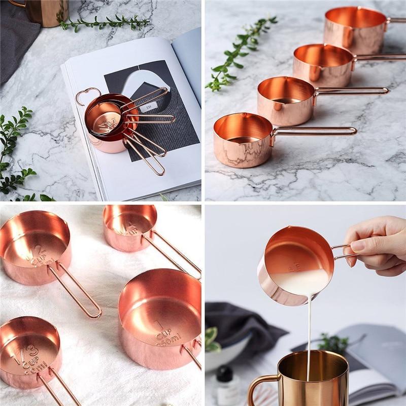 Set Of 8 Rose Gold Stainless Steel Measuring Cups Spoons Baking Tools Measuring Cups Jugs & Spoons