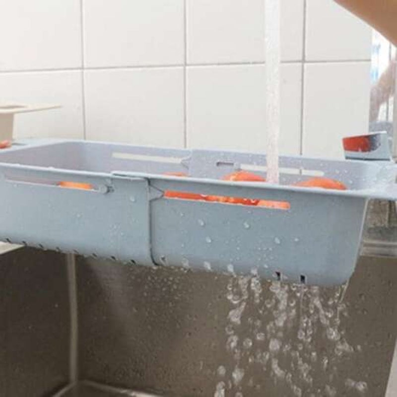 Creative Retractable Sink Draining Basket Home Kitchen Dish Rack Crystal Blue Racks & Holders