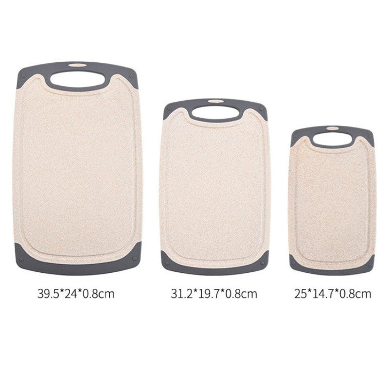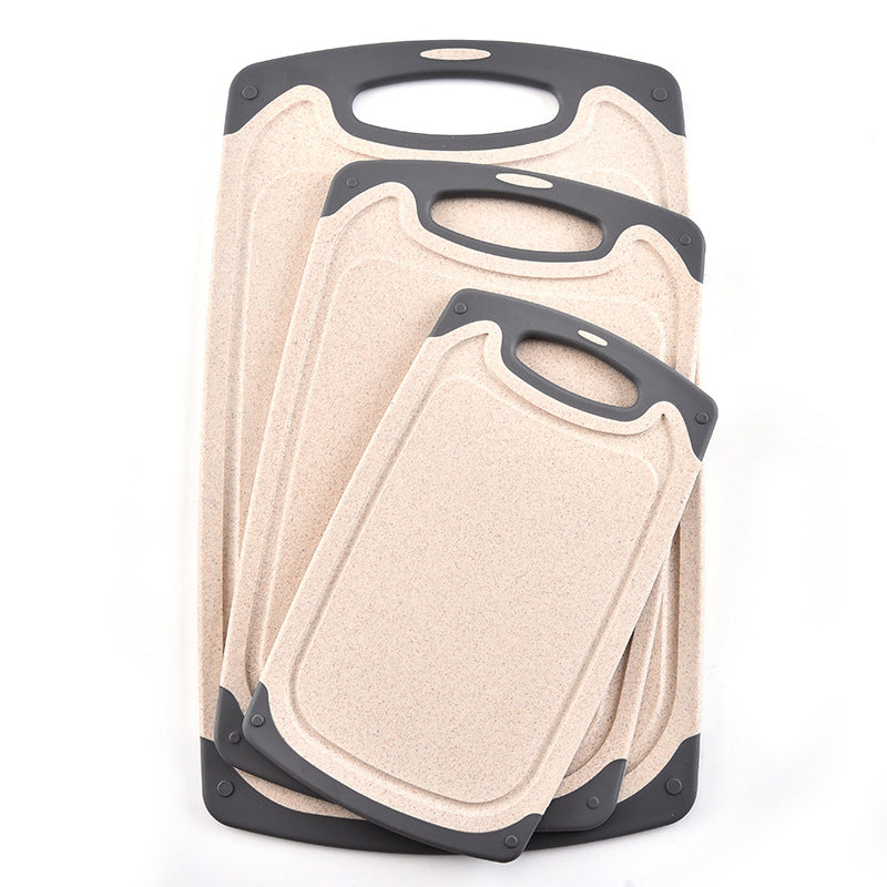 Off White 3 Piece Wheat Straw Cutting Board Set Non Slip Groove Design Plastic Chopping For Kitchen Use Cutting Boards