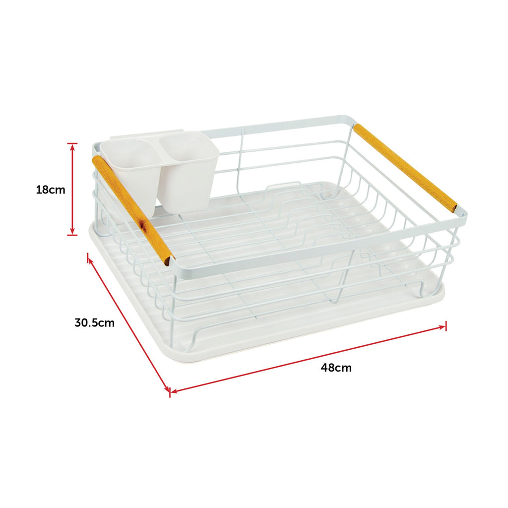 P>Crafted From Strong Durable Iron With A Rust-Resistant Coating It Can Handle Even Your Heaviest Pots And Pans. Its Thick Protective Coating Is Designed To Keep Rust At Bay For Years To Come Even Under Frequent Use. Its Deep-Channelled Resin Drip Tray Protects Your Countertop From Drips As Your Dishes Dry. And It Comes Ready To Use Right Out Of The Box With No Assembly Needed. Simply Place The Cutlery Holder Where You Want It And Start Drying Your Dishes In Style. Give Your Kitchen A Quick Update With This Drying Rack. Order Yours TodayP>Features And Specifications:Ul>Li>Material: Pp-Coated Iron Resin And Beech TimberLi>Colour: White And BrownLi>Dimensions: 48 X 30.5 X 18 Cm L X W X HLi>Includes Drying Rack Drain Pan And Cutlery HolderLi>Rust-Resistant And DurableLi>Easy To Grab Handles With Comfortable Rounded EdgesLi>Strong Enough To Dry Even Heavy PansLi>No Assembly NeededLi>Clean Minimalist Design Adds Elegance To An Everyday Accessory/Ul>