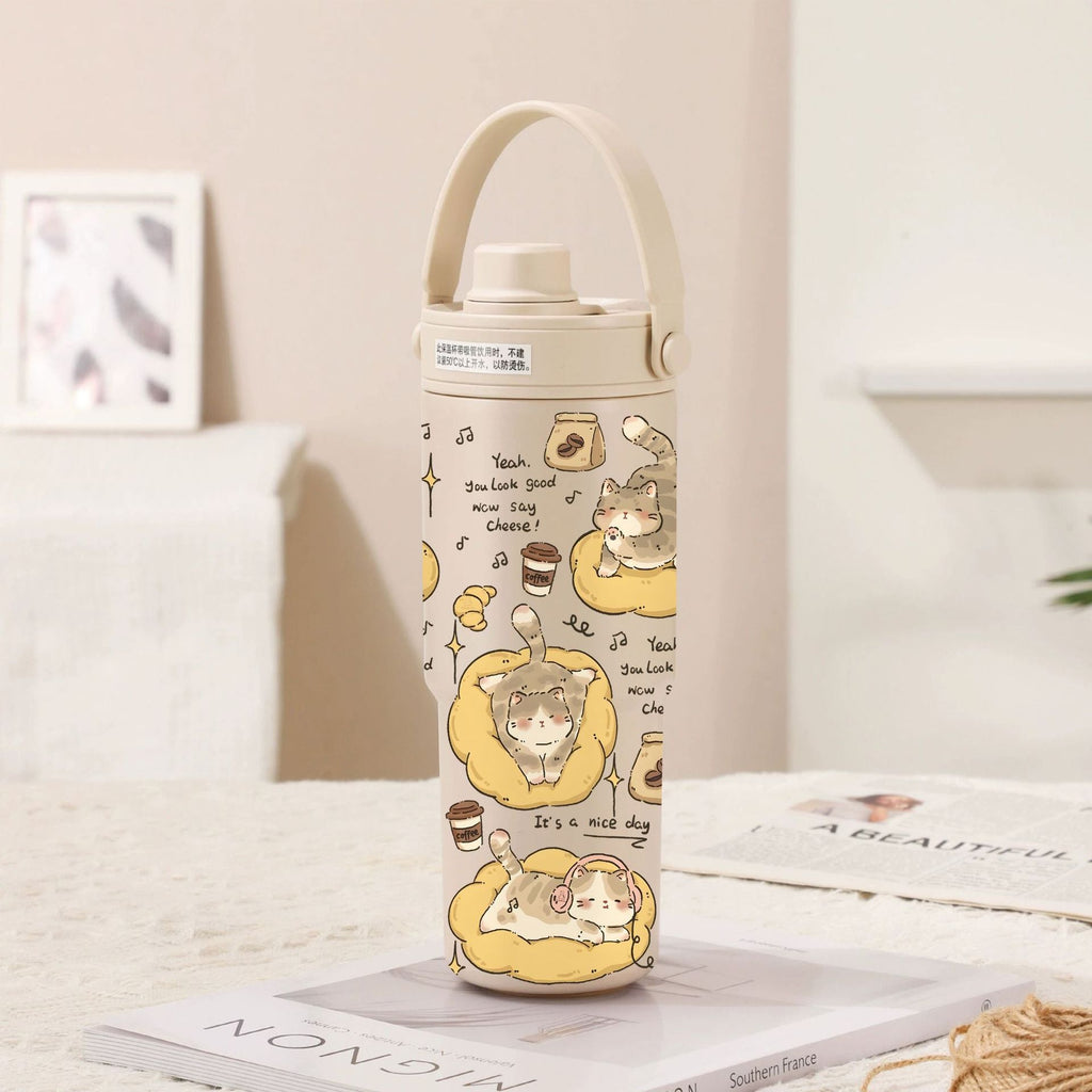 Light Cream Coffee Lazy Kitten 30Oz Ceramic Lined Insulated Tumbler With Handle 735Ml Stainless Steel Travel Mug Vacuum Flasks & Mugs