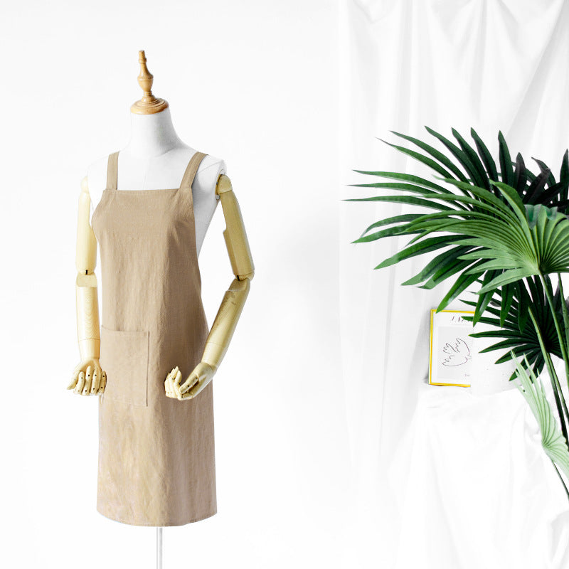 Solid Cotton Linen Apron – Breathable Handmade Kitchen Apron With Pocket