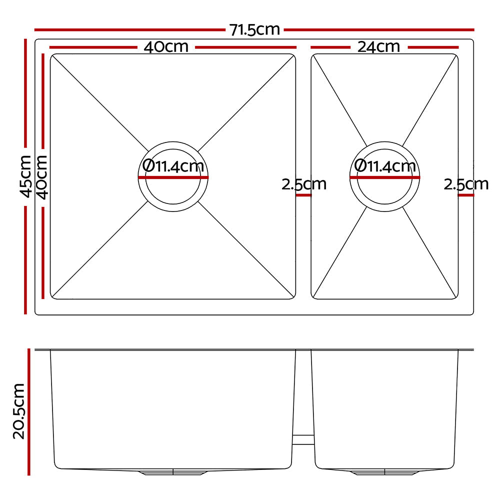 Cefito Kitchen Sink 71X45cm Stainless Steel Basin Double Bowl Silver Kitchen Sinks