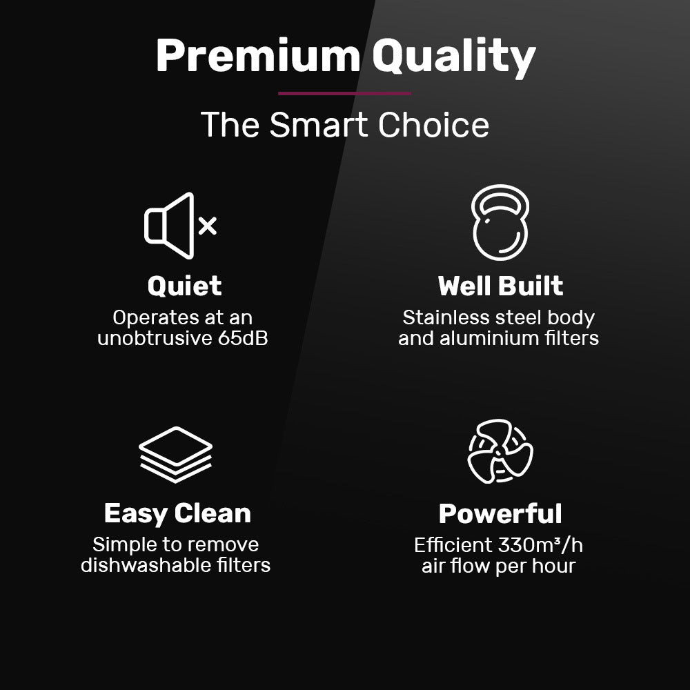 Designed For Quiet Operation It Produces Just 65Dba Of Sound At Maximum Speed. The Easy-To-Use Auto-On Switch With Two-Speed Controls Gives You Flexible Ventilation Options While The Removable Dishwashable Three-Layer Aluminium Filters Simplify Maintenance.