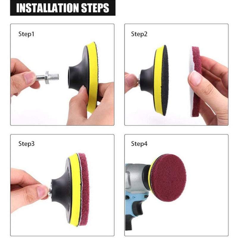- Set Includes 20Pcs 4 Inch Scouring Pads 5Pcs 4 Inch Sponge 3Pcs 2 Inch Brushes 2Pcs 3.5 Inch Brushes 4Pcs 4 Inch Brushes 1Pc 5 Inch Brush 1Pc 4 Inch Backer 1Pc 15Cm Extended Reach Attachment